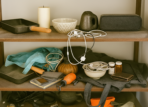 We all have these things. The candle that smells like synthetic melon and regret. The tote bag from a conference you didn’t attend. A stack of mail that’s now more historical artifact than actionable item. That one throw pillow that’s always in the way but never gets used. A decorative bowl that’s never held anything. A Bluetooth speaker that only works when tilted at a 45-degree angle. And let’s not forget the charity pile, the one you proudly assembled two weeks ago and still haven’t taken anywhere. You’ve already pulled three things back out of it. One of them was a shirt you haven’t worn since 2019, but now you’re convinced it might be “good for layering.”