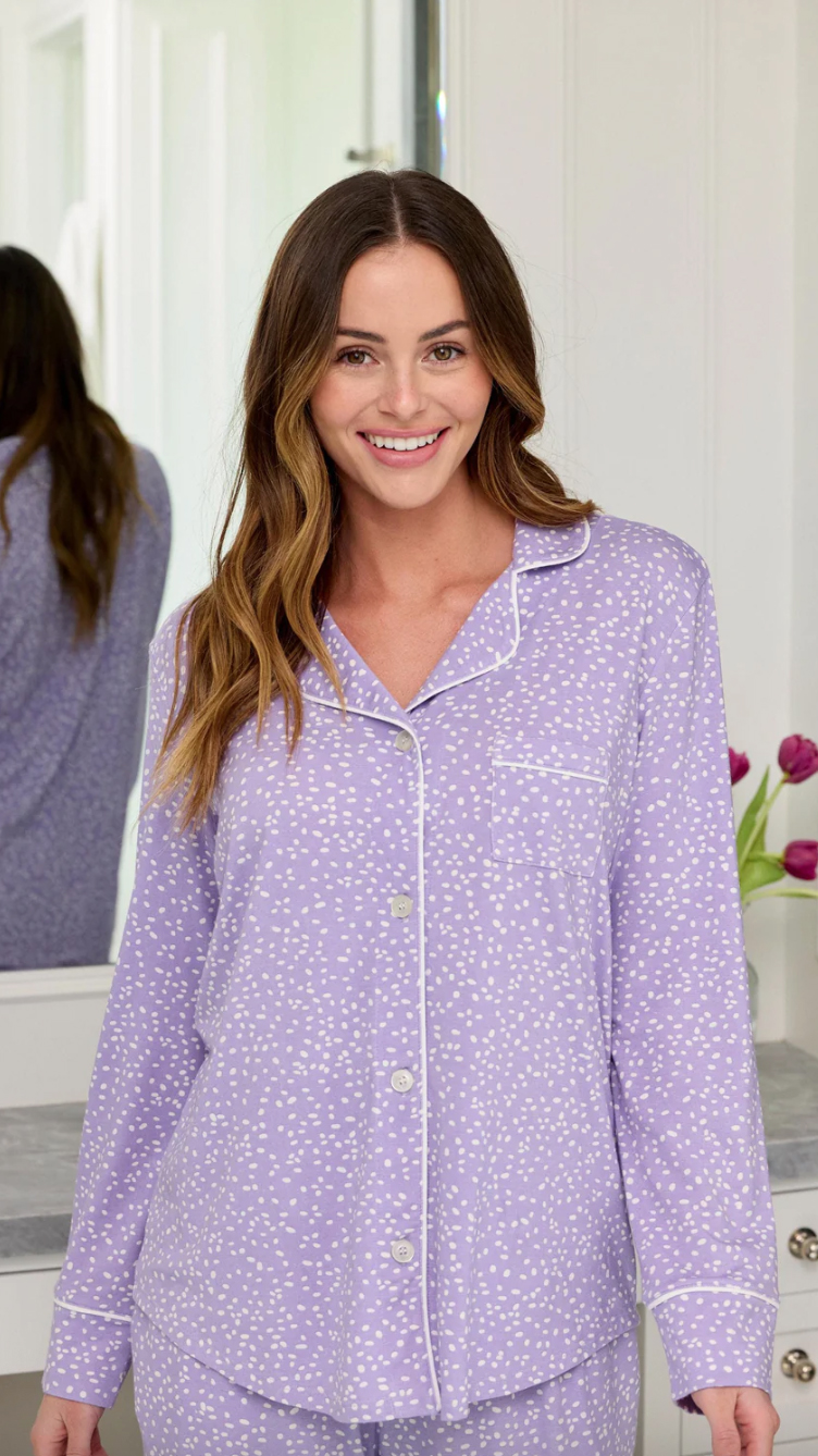 The Cat's Pajamas Women's Lilac Confetti Dot Pima Knit Cotton Classic Pajama Set