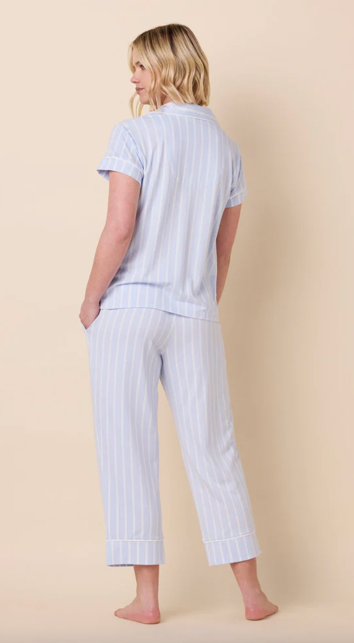 The Cat's Pajamas Women's Heritage Stripe Pima Knit Cotton Capri Pajama Set in Blue