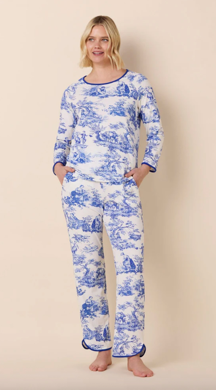 The Cat's Pajamas Women's Idle Hours Pima Knit Cotton Simple Set in Blue