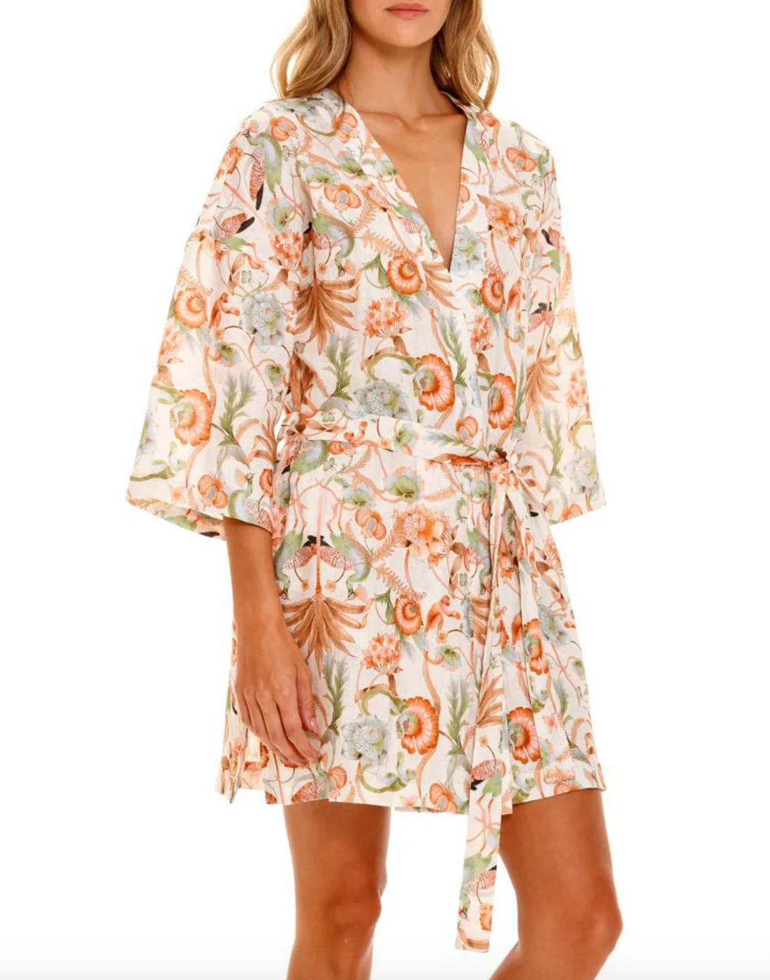The Lazy Poet Women's Lola Peach Jungle Lush Linen Kimono RobeOnly 3 left in stock$155.00Add to cartDecrease product amount by 1Product amount in cartIncrease product amount by 1Sorry, we only have 3 of that item available