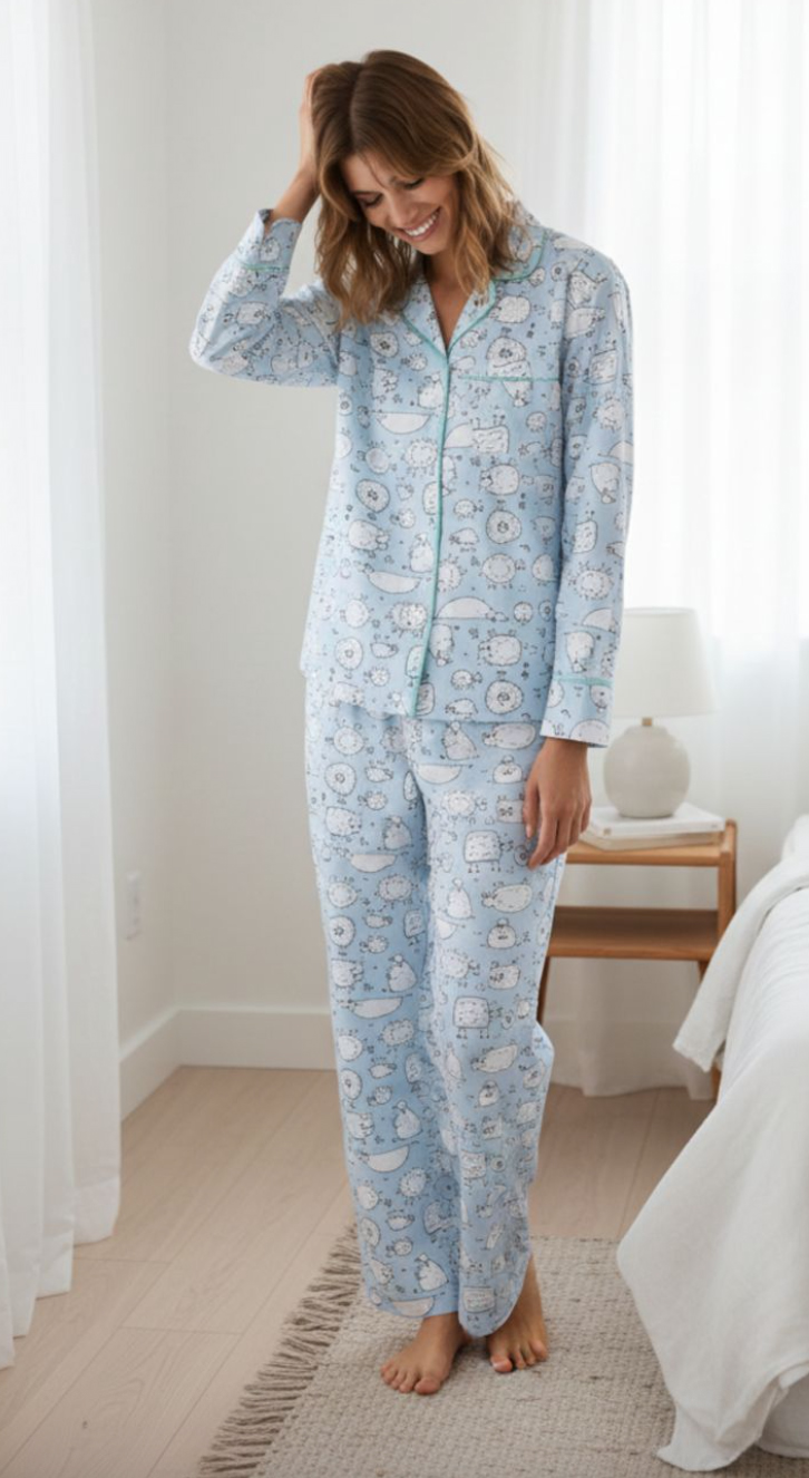 We've counted these sheep and there's not a baaa-d one in the bunch. Our soft, 100% cotton set is cozy, elegant and perfect for drifting off to dreamland. Check out the matching nightshirt in our Daisy Alexander collection.