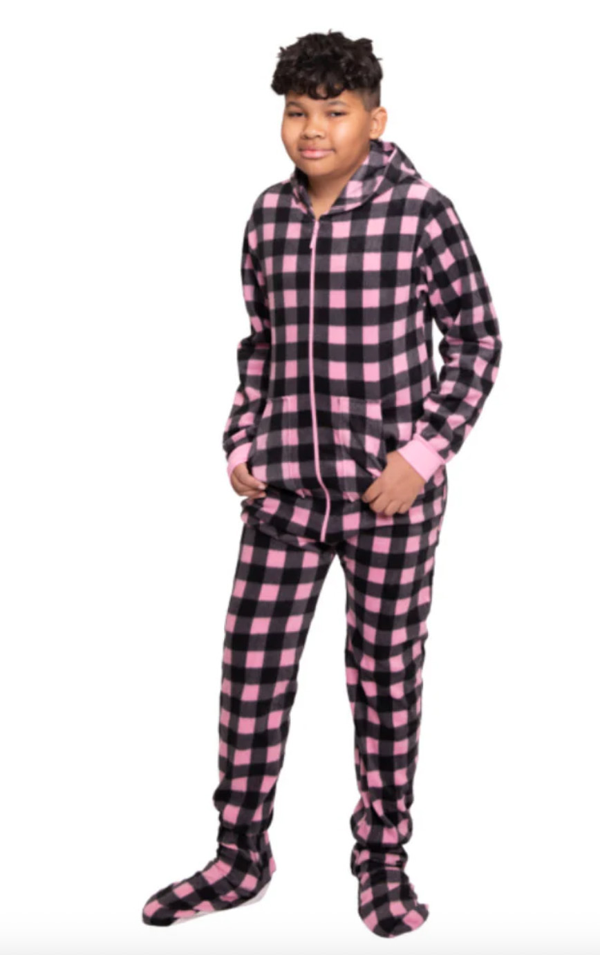 Big Feet Pajamas Kids Pink & Black Buffalo Plaid Fleece Hooded One Piece FootyOnly 6 left in stock$38.00Add to cartDecrease product amount by 1Product amount in cartIncrease product amount by 1Sorry, we only have 6 of that item available