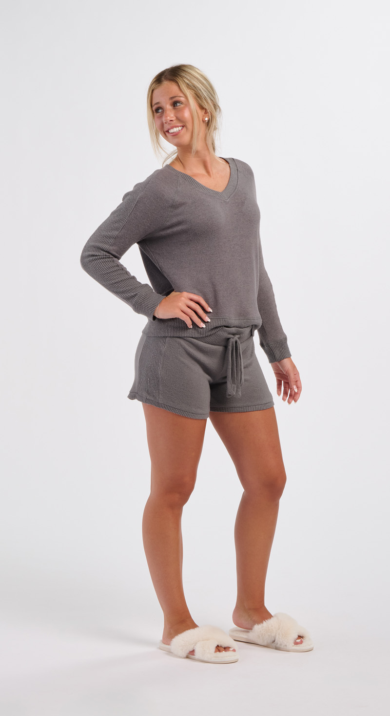 Boxercraft Women's Cuddle V-Neck Lounge Top in Mediation Grey Heather Only 1 left in stock$46.00Add to cartDecrease product amount by 1Product amount in cartIncrease product amount by 1Sorry, we only have 1 of that item available