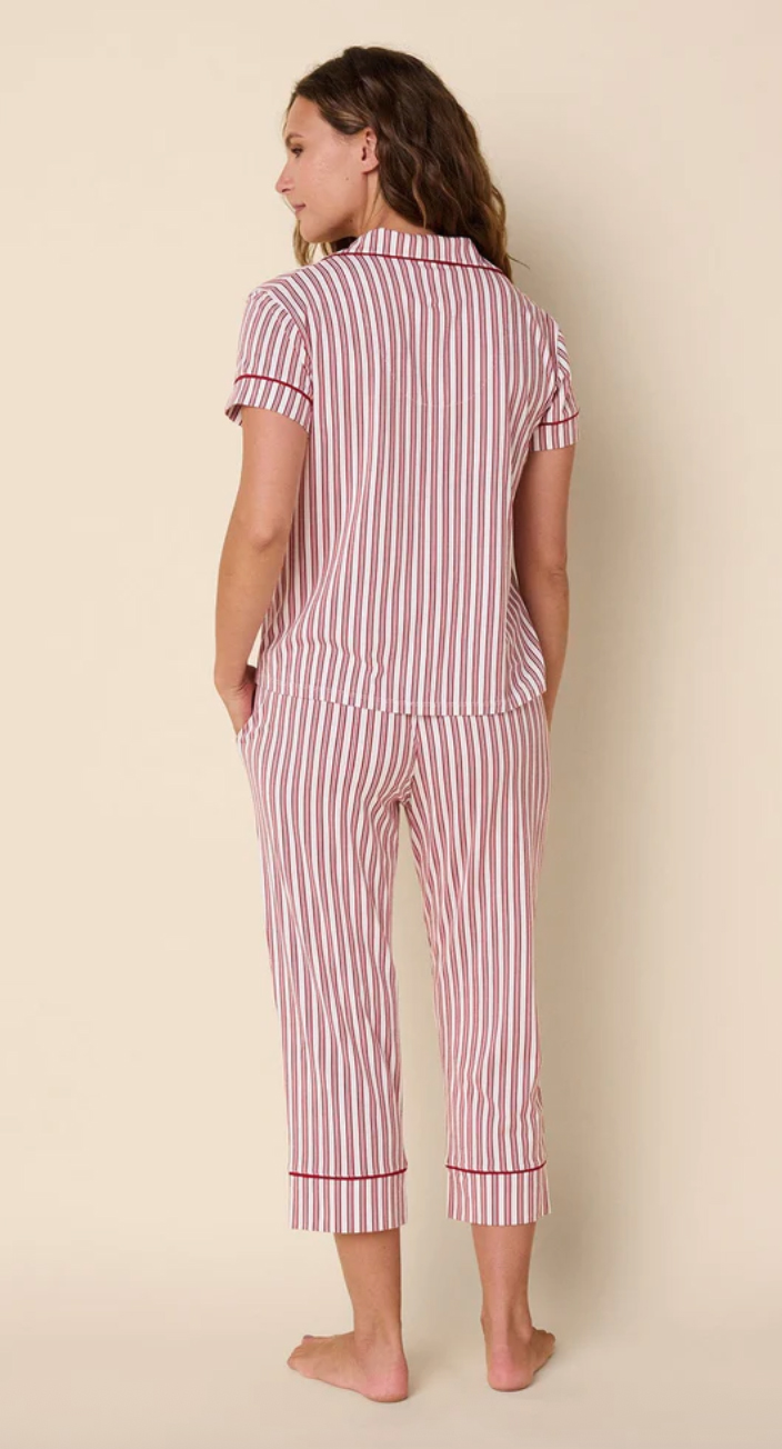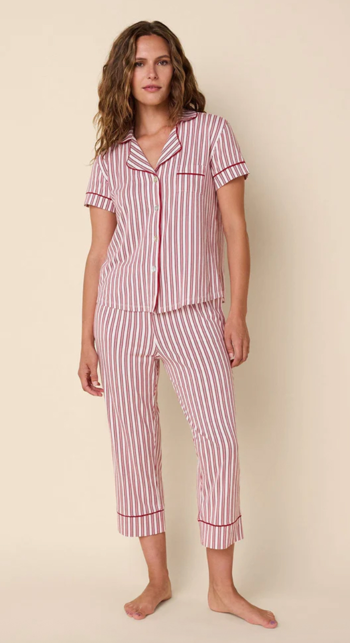 The Cat's Pajamas Women's Holiday Stripe Pima Knit Cotton Capri Pajama Set