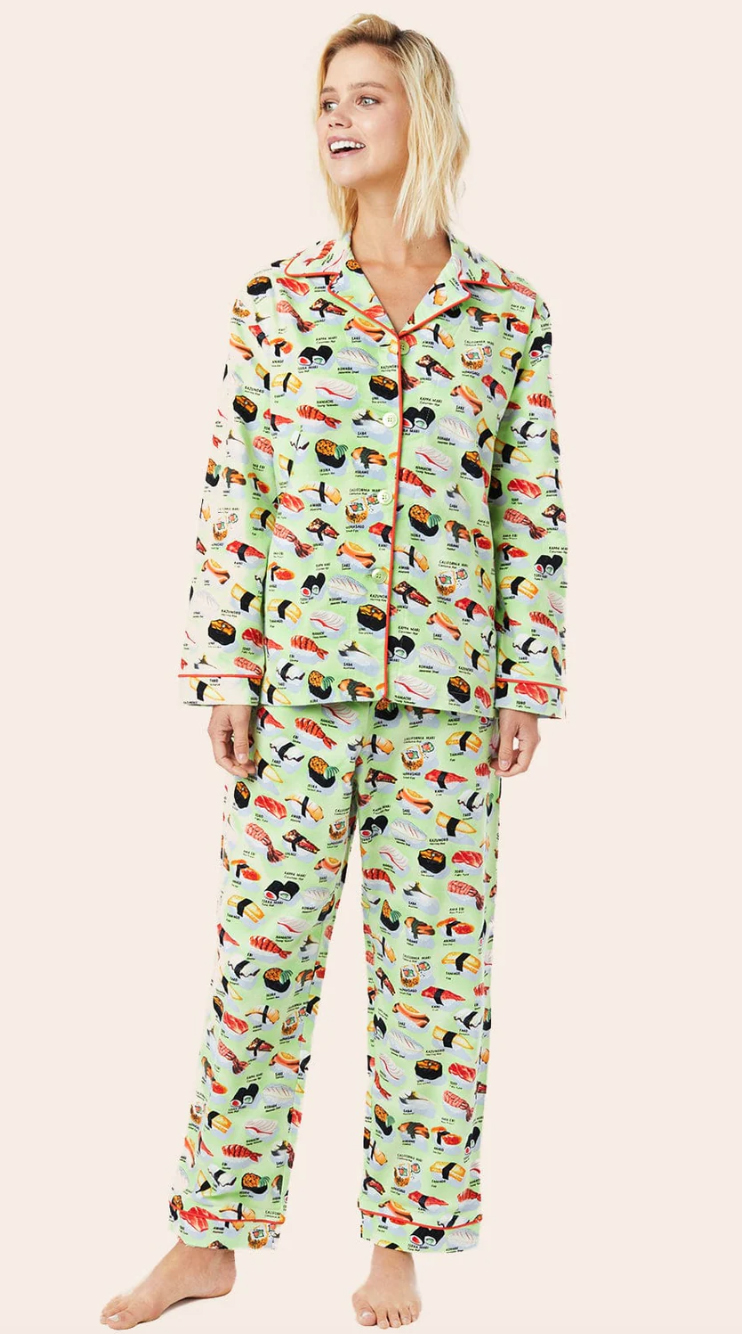 The Cat's Pajamas Women's Wasabi Sushi Poplin Cotton Classic Pajama Set in Green$129.00Add to cartDecrease product amount by 1Product amount in cartIncrease product amount by 1Sorry, we only have 9 of that item available