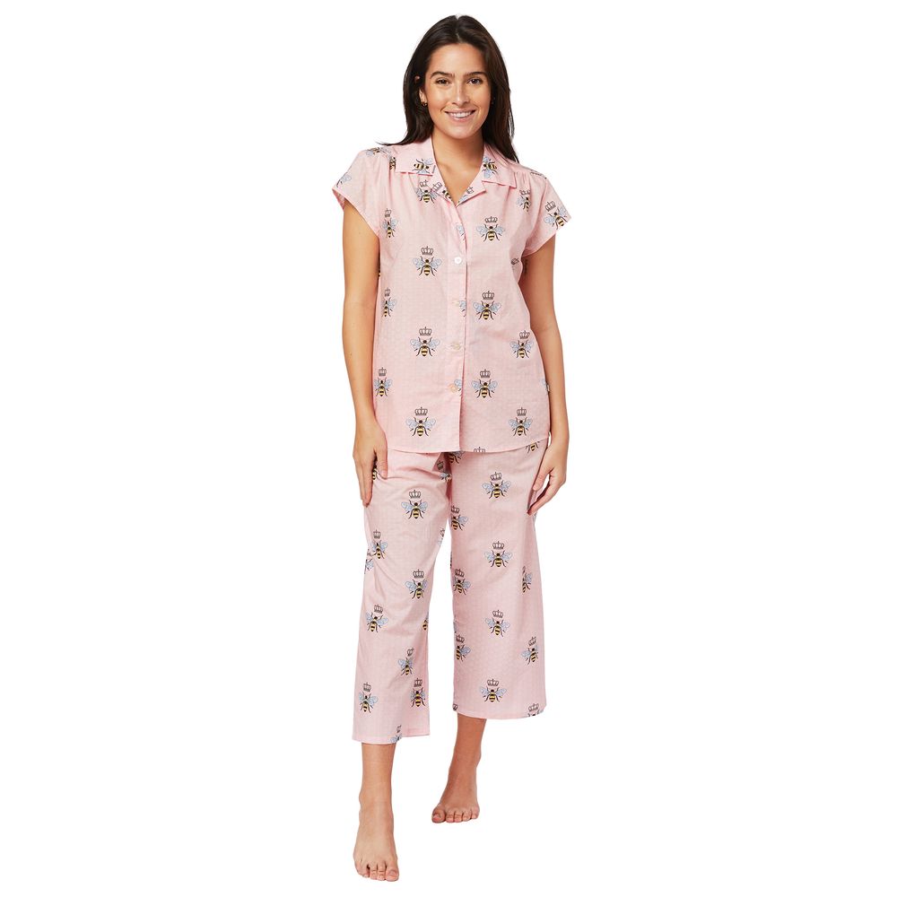 Only 3 left in stockThe Cat's Pajamas Women's Classic Stripe Luxe Pima Cotton Capri Pajama Set in Pink