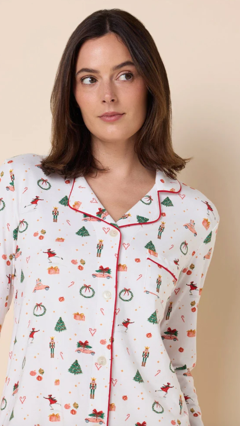 The Cat's Pajamas Women's Chrysantheme Pima Knit Cotton Classic Pajama Set in Red