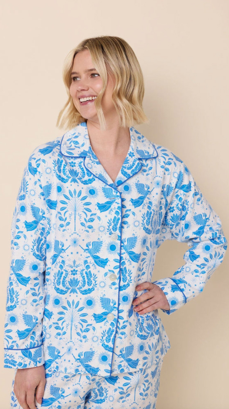 The Cat's Pajamas Women's Flamazing Pima Knit Cotton Classic Pajama Set in Navy