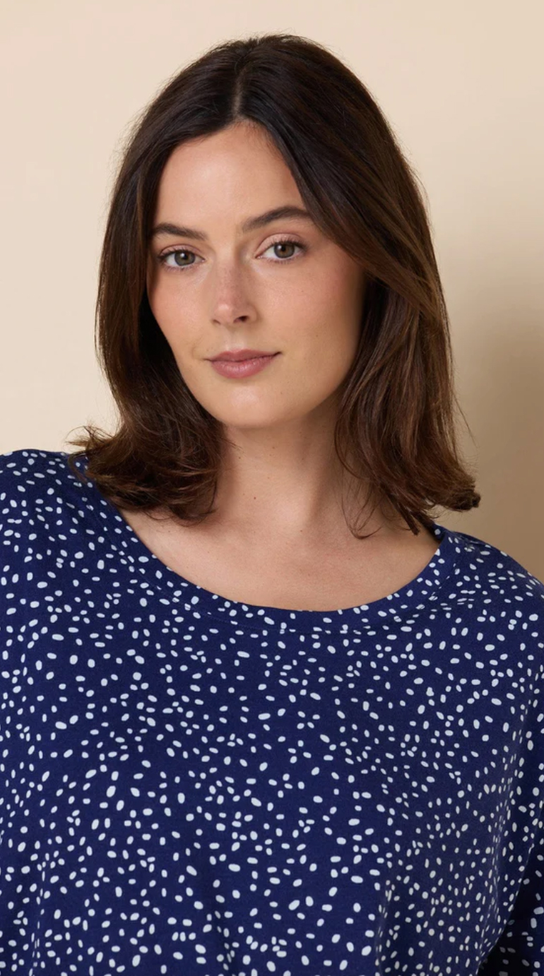 The Cat's Pajamas Women's Confetti Dot Pima Knit Cotton Pullover Lounge Set in Navy