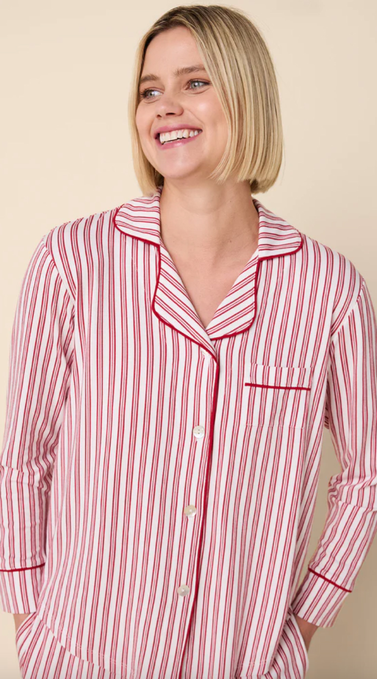 The Cat's Pajamas Women's Holiday Stripe Pima Knit Cotton Classic Pajama Set